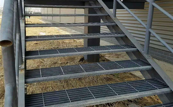 楼梯踏步板是由钢格板加工而成的(钢格板是用扁钢按照一定的间距和横杆进行交叉排列,并且焊接成中间带有方形格子的一种钢铁制品)。该产品表面一般用热镀锌、电镀锌处理。